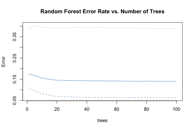 paste("Random Forest; AUC =", round(auc(forest_roc), 3))