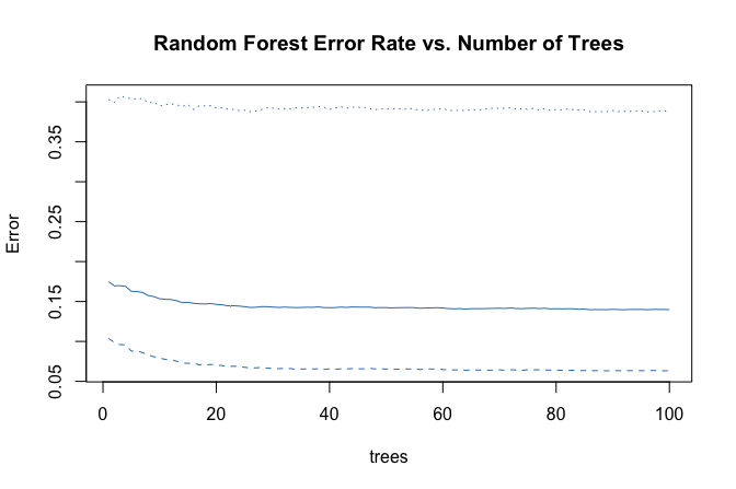paste("Random Forest; AUC =", round(auc(forest_roc), 3))