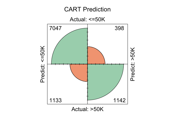 conf.mat.plot(cart_probs, test_labels, cutoff = 0.5, reference = "<=50K", main = "CART Prediction")