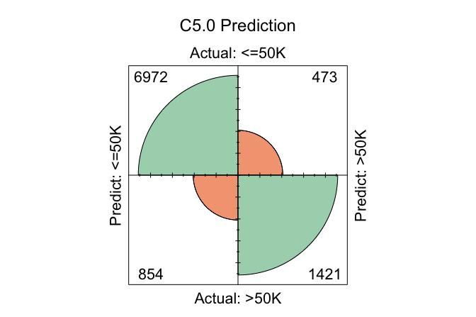 conf.mat.plot(C50_probs, test_labels, cutoff = 0.5, reference = "<=50K", main = "C5.0 Prediction")