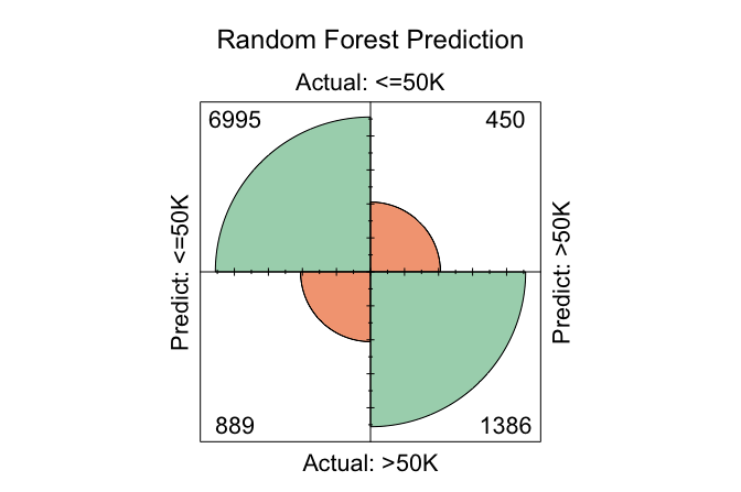 conf.mat.plot(forest_probs, test_labels, cutoff = 0.5, reference = "<=50K", main = "Random Forest Prediction")