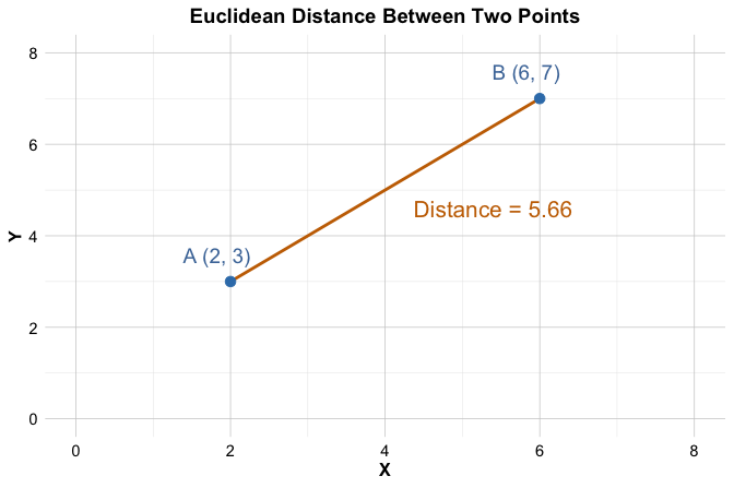 Figure 14.2: Visual representation of Euclidean distance between two points in two-dimensional space.
