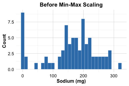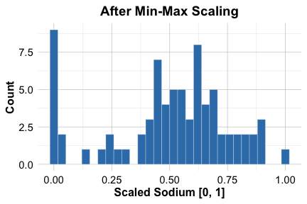 As shown in the histograms, scaling maps sodium values to the \([0, 1]\) range, preventing variables with larger units from disproportionately influencing distance calculations. With the data cleaned, imputed, and scaled, we are now prepared to apply K-means clustering. The next step is to determine how many clusters should be used.