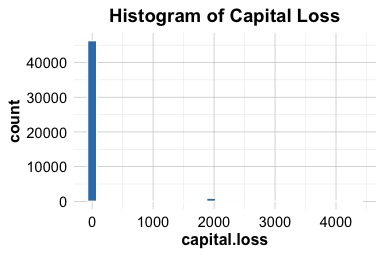 ggtitle("Histogram of Capital Loss")