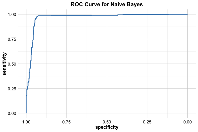 laplace = 1) and compare results.Adjust the classification threshold to 0.3 and note changes in sensitivity and specificity.